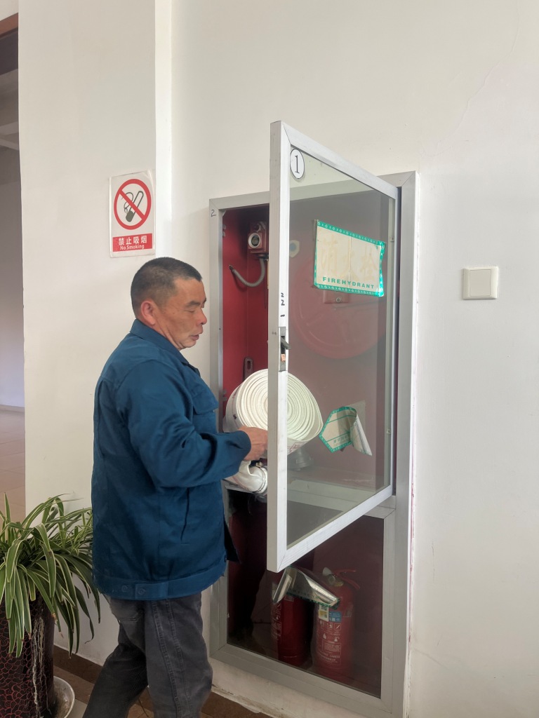 火災逃生要點:保持冷靜、盡快報警、低姿前行、封閉房門、尋找逃生通道、切勿乘坐電梯、互幫互助和注意安全。 2、消防栓的使用 劉順講解消防栓的使用: 1)打開消防栓箱,按下內部火警按鈕。 2)取出消防水帶,向著火源點延伸展開,注意避免扭折水帶。 3)接上水槍,將水帶的一端與水槍連接,另一端接口與消火栓接口連接。 4)連接水源,確保連接扣準確插入滑槽,按順時針方向擰緊。 5)手握水槍頭及水管,打開水閥門,即可滅火。