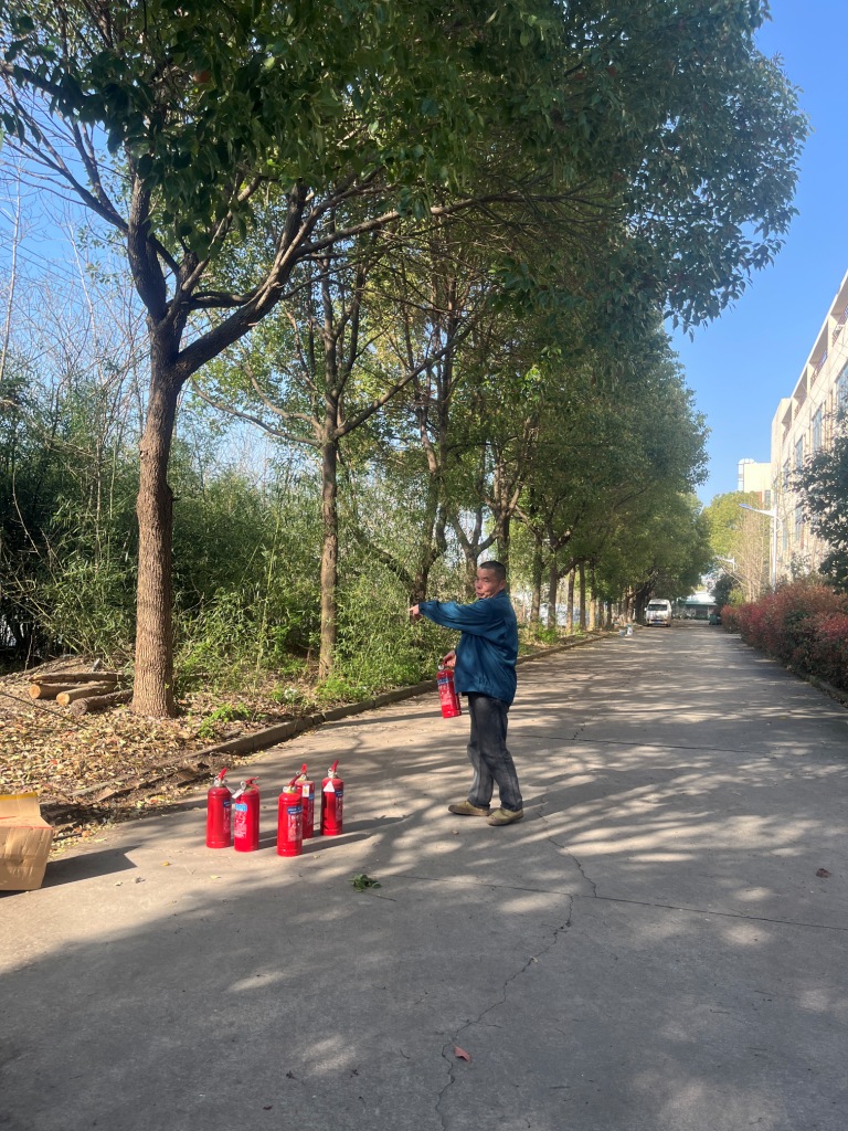 3、滅火器的使用 1)提:用手握住滅火器的提把,提起滅火器,平穩、迅速地到達火災現場。 2)拔:在距離起火點適當的位置(通常是5米左右),拔掉保險銷。注意在拔保險銷時,不能過于用力握緊上壓把和下握把,否則可能不易拔開。 3)瞄:在距離著火物一定距離(通常是2米左右)外,用一只手握住膠管噴嘴的前端,將噴嘴瞄準火源根部。確保噴嘴對準火源根部,這樣可以更有效地滅火。 4)壓:站在火源的上風方向,用另一只手壓下壓把,使滅火劑噴出。 5)掃:對準火源根部進行左右搖擺掃射,掃射時由外向內、由近至遠,直至火源被撲滅。